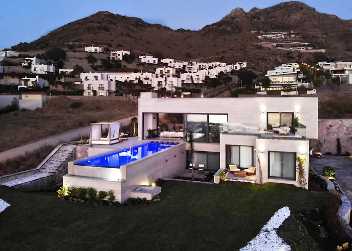 A Sunset Beaches 12 percnyi sétára található tengerparti Vistaport A - Luxury Villa With Private Pool And Sea View Bodrum medencére néző terasszal büszkélkedik.